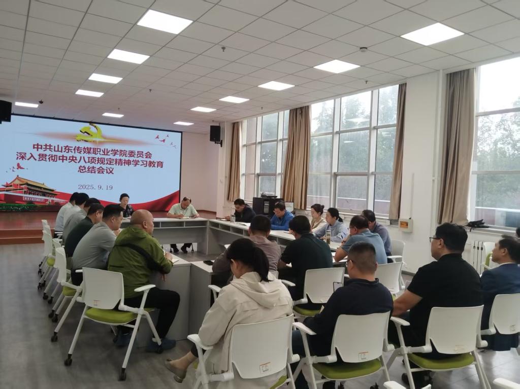 9月19日,学院在章丘校区思政教学实训室召开深入贯彻中央八项规定精神学习教育总结会,全面总结学院深入贯彻中央八项规定精神学习教育的做法和成效,部署巩固拓展学习教育成果、持续推进作风建设常态化长效化工作。学院领导,各部门负责人、各党组织书记参加会议。
